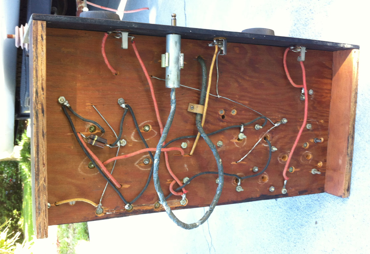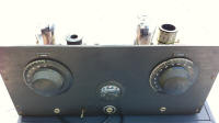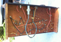 According to W4PSH, Adrian Snow, (who restored our Collins 75A2 and 32V3) the radio as built is representative of the type of equipment that was available in the 30’s when W4DFU was first licensed. Some of the parts are correct for the period but others (RF chokes, meter, some of the mica capacitors) are not of the same vintage. At the time generally the wood base would be of a solid type of wood, the plywood used would have not been available in the 1930s. The transmitter had a unique way of two position meter reading selection, by plugging in a phono plug to either of two jacks on the front panel. The cord with the plug passes through the front panel and can be seen on the bottom view. One shorted 47 tube is present. A period correct replacement balloon-type tube is rather expensive ($40-$50). Even more importantly it would be cost prohibitive to construct a supply and provide a safety enclosure for the transmitter as the 500 volts with exposed components would be dangerous. Even with all three tubes in function the transmitter on 40m (single bander) would probably only have 3-4 Watts output and is crystal controlled making on the air usage problematic. It sure is a nice find and of great interest to those interested in the days W4DFU got started... |