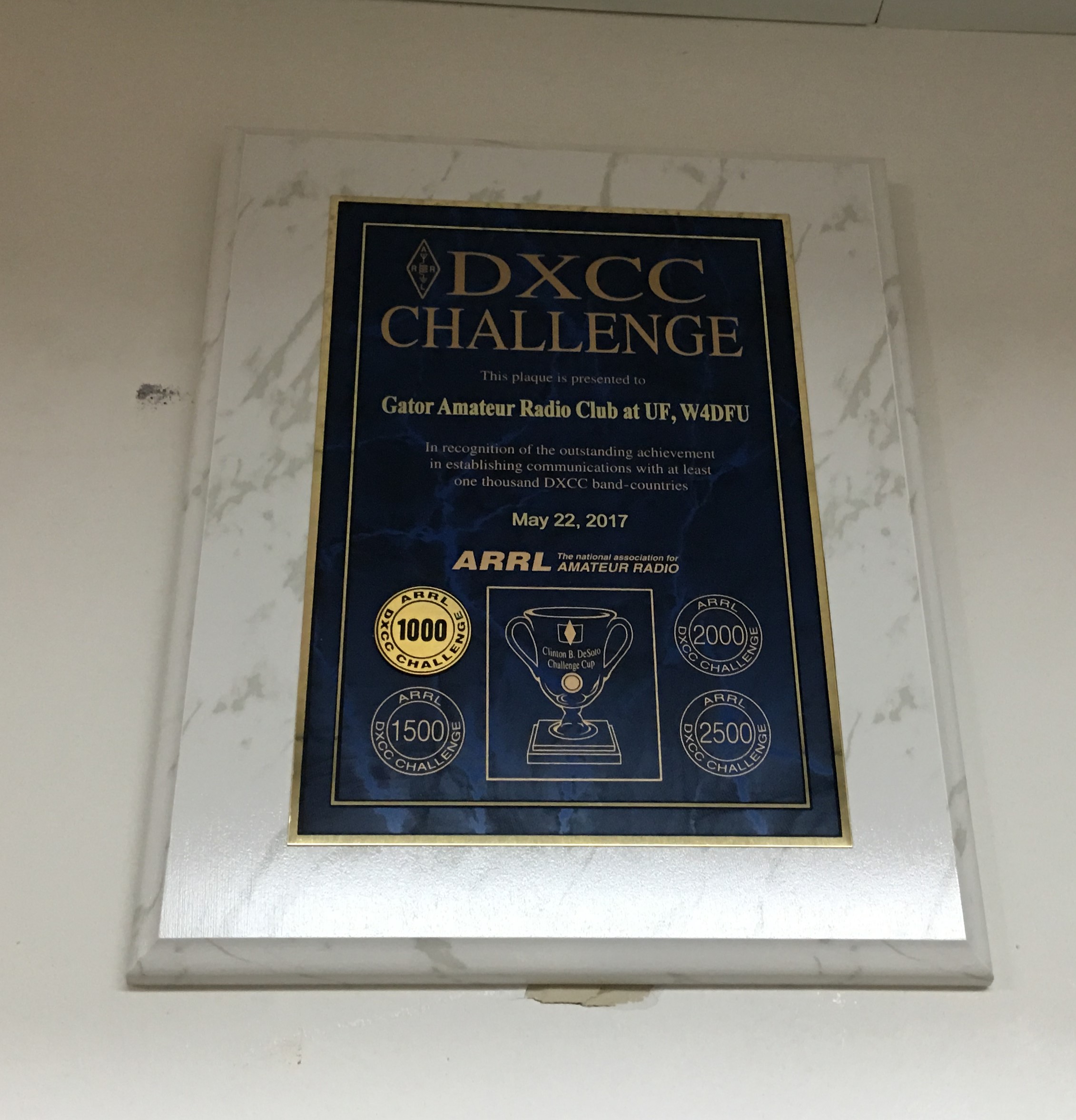 May 2017DXCC Challenge Award earned by W4DFU Gator Amateur Radio Club earns recognition in the DXCC Challenge by confirming contact with over 1000 radio countries on the amateur bands.